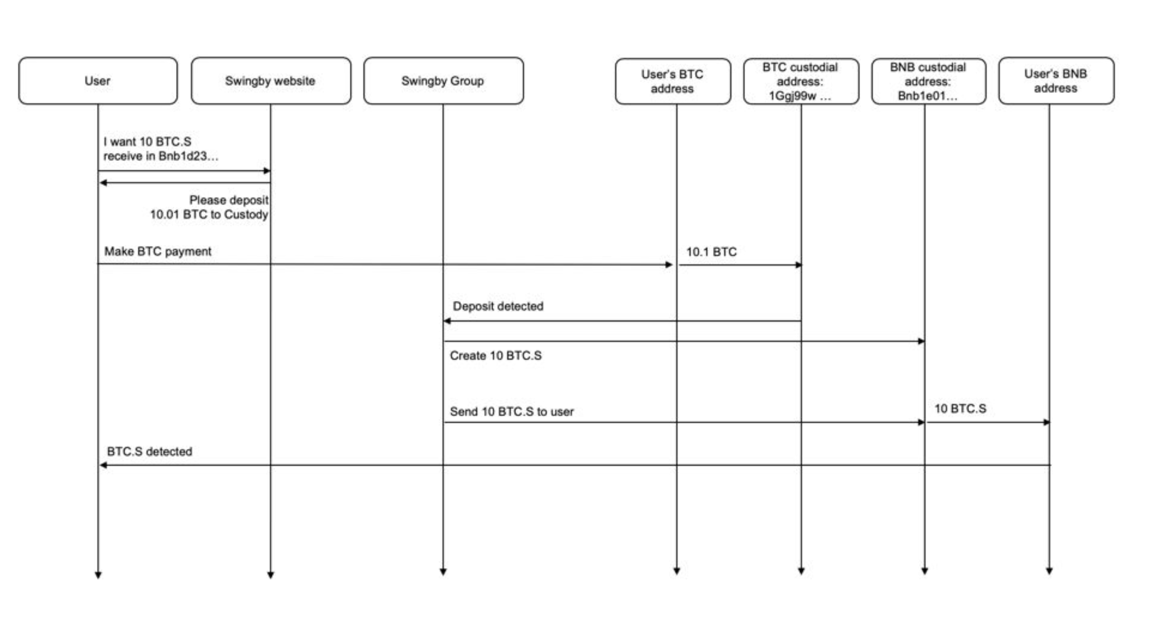 Any of the Swingby nodes can broadcast the signed transaction to the relevant blockchain (Bitcoin or Binance Chain). This means that the blockchain will receive multiple similar transactions, all of which are identical - and only one of which will get through.